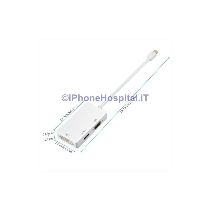 Cabo Adaptador 3 em 1 Mini DisplayPort/Thunderbolt™ Porta para HDMI/DVI/VGA Branco
