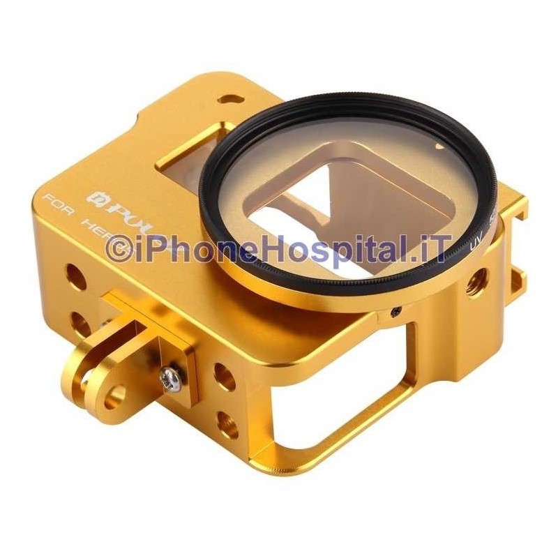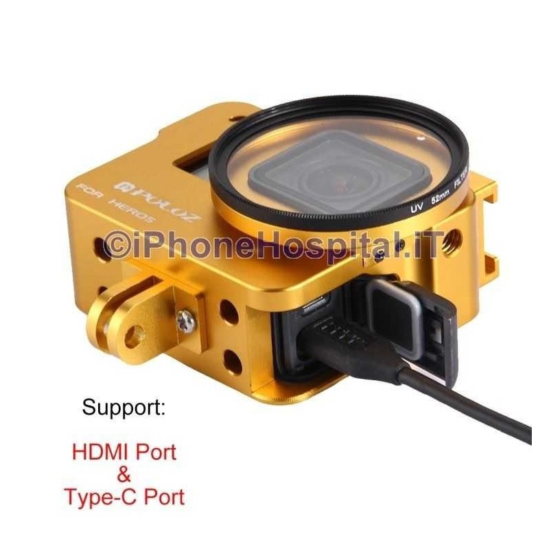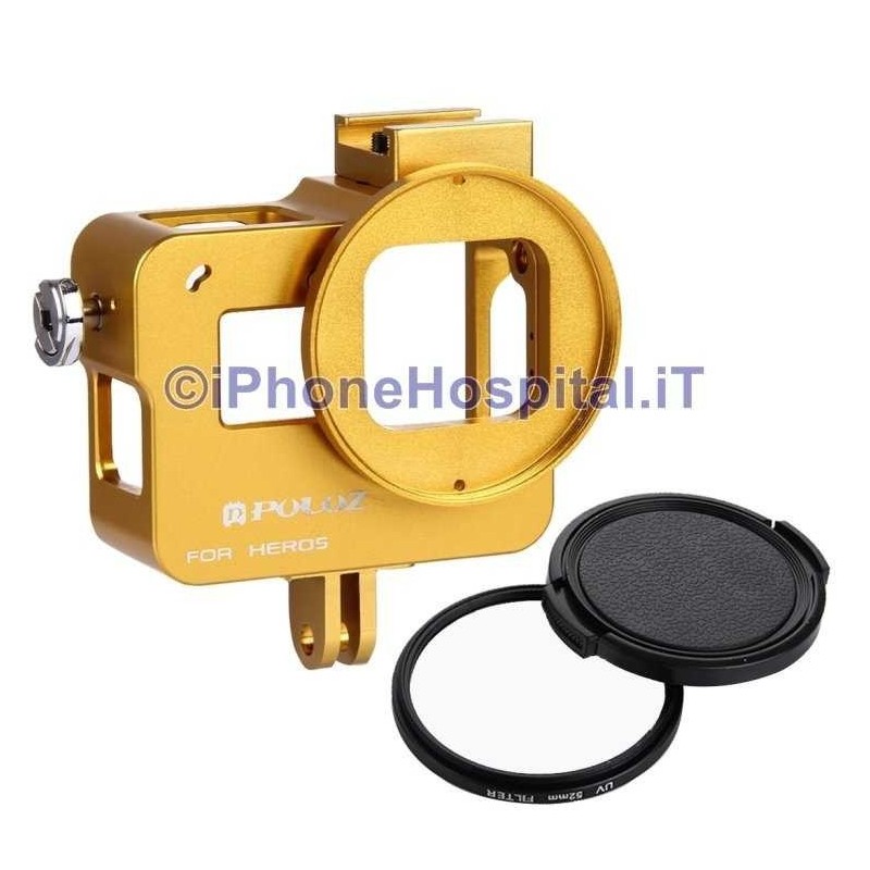 Protective Aluminum Case Shell for GoPro Hero 5 (GOLD) + 52mm UV Lens