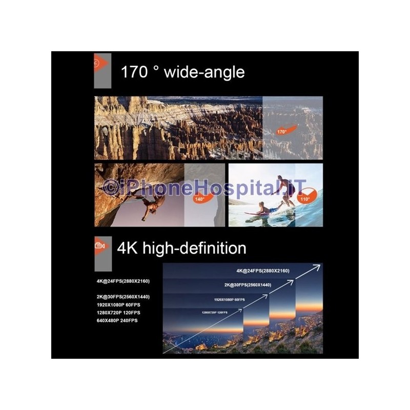 WiFi Action Camera with 2" Screen 4K with Waterproof Case