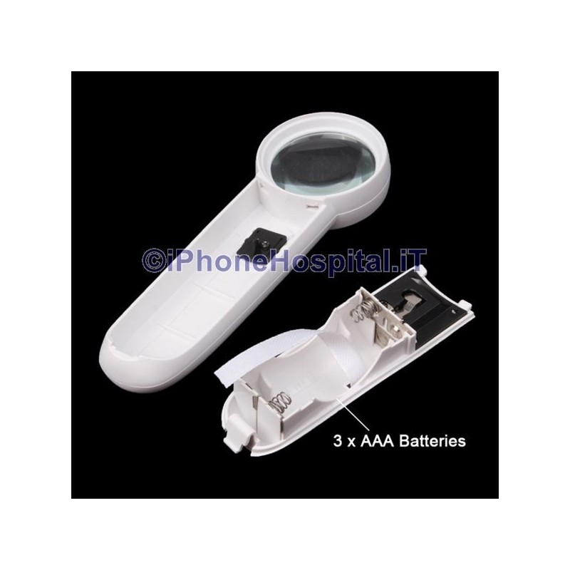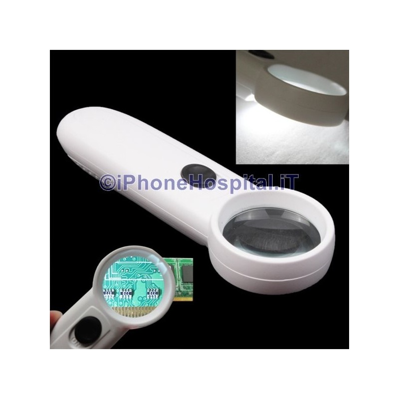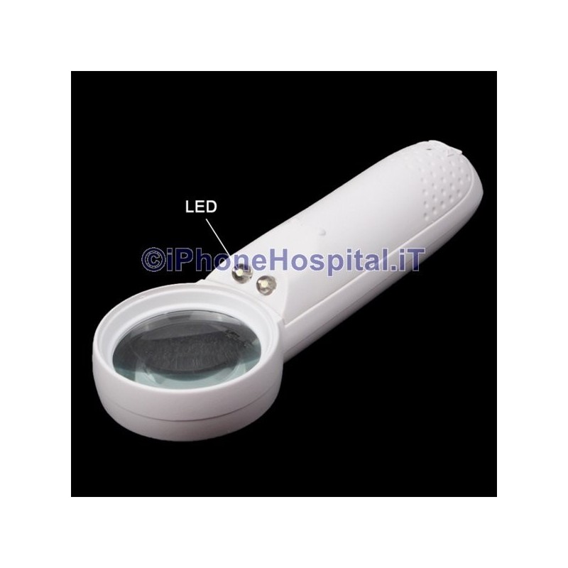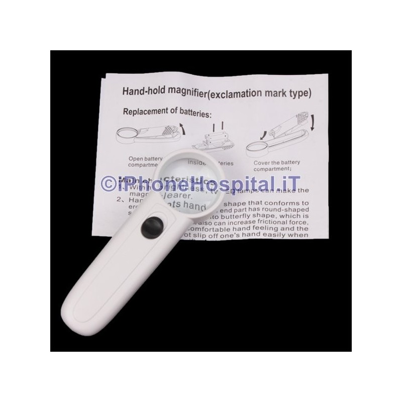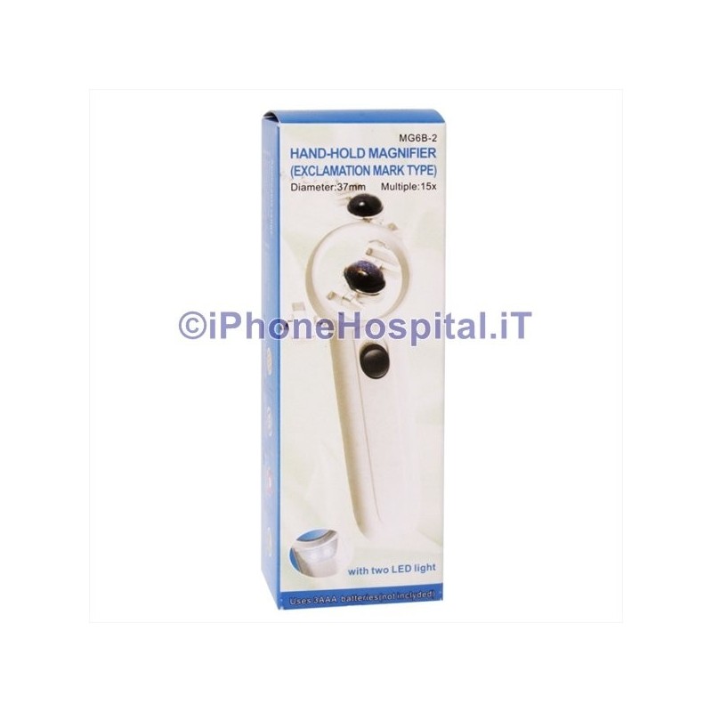 Potente lupa de mano 15X con forma de signo de exclamación y 2 luces LED