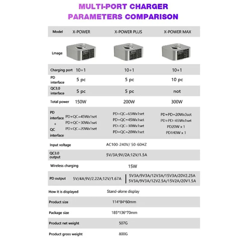1. Cargador de sobremesa superrápido X-Power Max, potencia máxima de un solo puerto 140 W, admite carga PD/inalámbrica y salida al mismo tiempo
