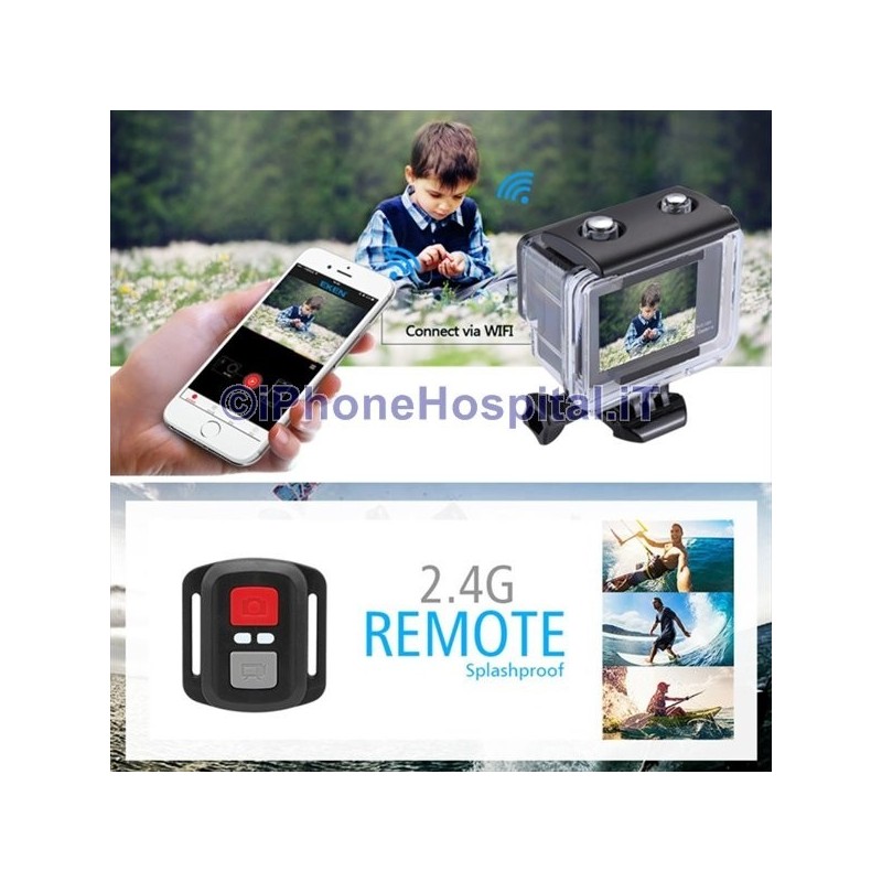 Caméra d'action WiFi avec écran tactile 2" Télécommande 4K Étanche 30MT