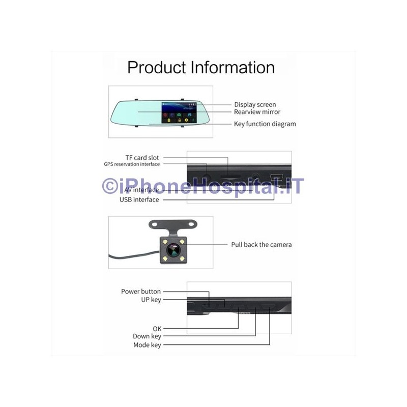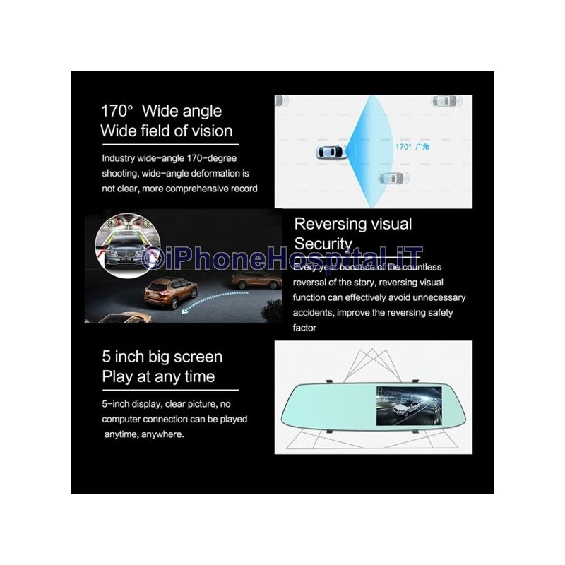 Caméra de recul enregistreur vidéo DVR avec écran tactile LCD pour ENREGISTRER le trajet en voiture avec 2 caméras, une interne au DVR et une autre externe qui peut être placée à l'arrière de la voiture pour la marche arrière.