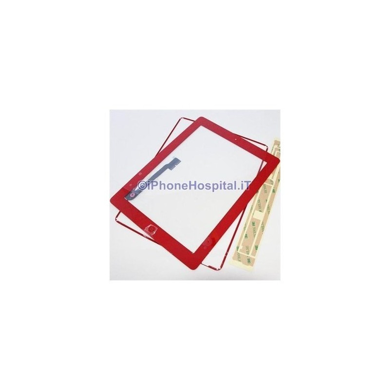 écran tactile rouge de l'iPad 4 complet avec cadre du bouton d'accueil et autocollants