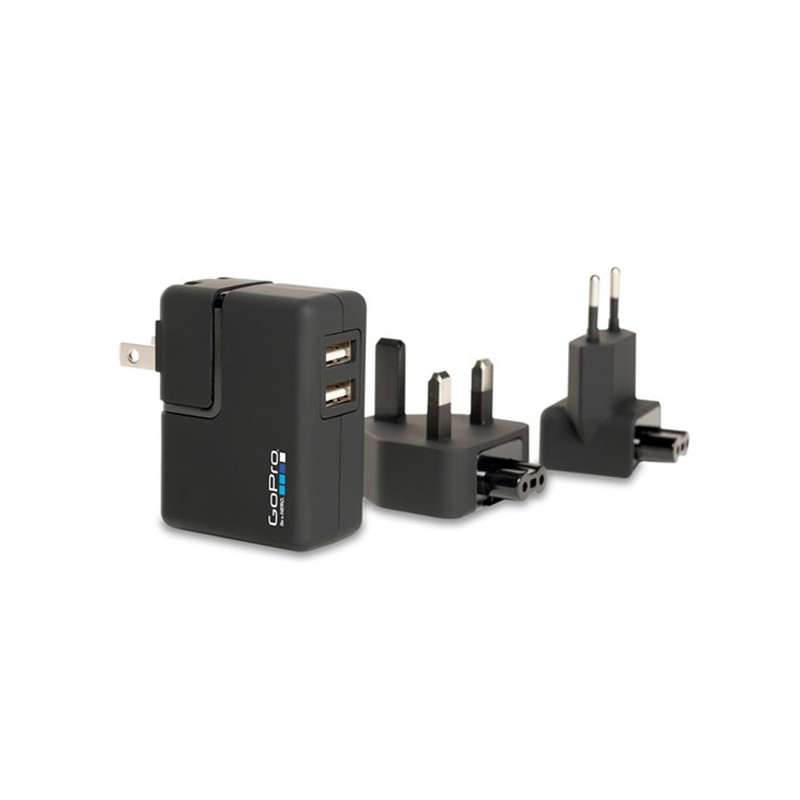 Carica fino a due videocamere GoPro, 2 volte più veloce, in qualsiasi presa a parete di tutto il mondo.